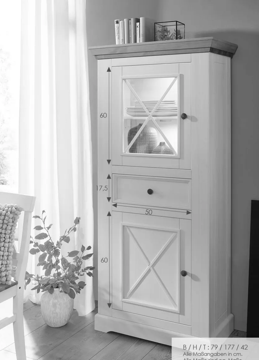 Die attraktive Vitrine Minnesota besitzt durch Ihre Kombination aus Echtholz und Glas einen ganz eigenen Charme. Außerdem bietet die Glasvitrine reichlich Platz und lässt sich vielseitig benutzen, zum Beispiel für Bücher, Dekoration und mehr. Auch hinsichtlich ihrer Verarbeitung lässt die Vitrine Minnesota keine Wünsche offen.