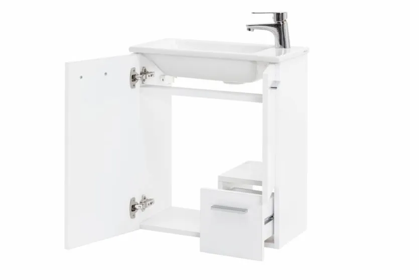 Wenn Sie Wert auf moderne und stilvolle Badmöbel legen, dann sei Ihnen der Waschtisch Matteo mit Waschbecken von Schildmeyer wärmstens empfohlen. Dank der integrierten Schublade bietet er Ihnen viel Platz für Kosmetika, Reinigungsmittel und viele andere Utensilien des täglichen Bedarfs. Besonders praktisch ist, dass Ihr Waschtisch Matteo eine unempfindliche und sehr leicht zu reinigende Melaminharzbeschichtung besitzt.