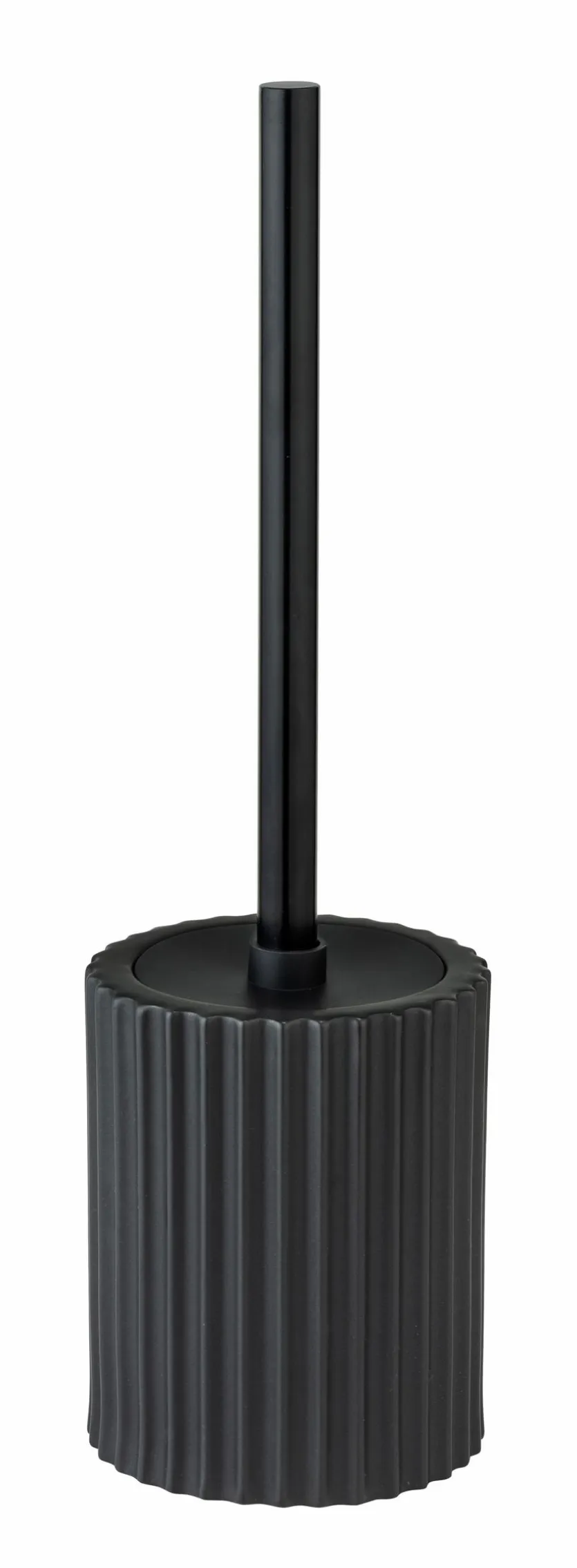 Die WC-Garnitur Soliera überzeugt mit tiefen Längsrillen in eleganter schwarzer Keramik und vereint formschöne Ästhetik mit praktischer Funktion. Der Edelstahlstiel sorgt bei der WC-Bürstengarnitur für zusätzliche Robustheit, während eine Abdeckung den Bürstenkopf dezent verbirgt. Die kompakte Konstruktion der WC-Garnitur Soliera integriert sich harmonisch in Ihre Badezimmereinrichtungen.