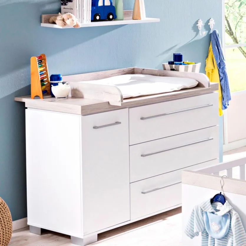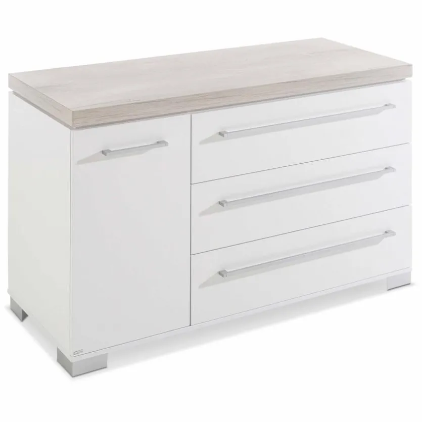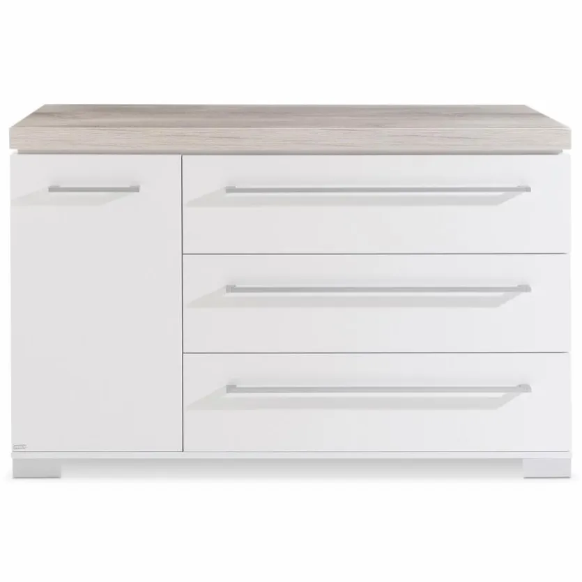 - Aus Spanplatte mit kratzfester Melaminharzfolie in Kreideweiß, Absetzung in Eiche Nautik