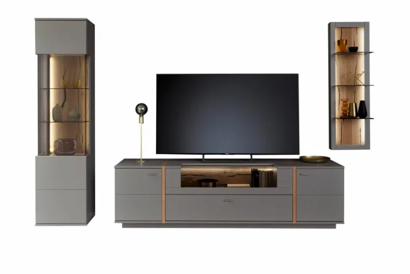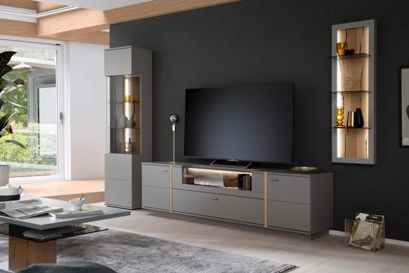 Wenn Sie bei Ihrer Einrichtung Funktionalität mit Stil kombinieren möchten, dann treffen Sie mit der Wohnwand Sevilla genau die richtige Wahl. Sie bietet in den Schubläden ausreichend Stauraum für verschiedenste Alltagsgegenstände und setzt gleichzeitig Ihre Schätze hinter Glas gekonnt in Szene. Das macht die Wohnwand Sevilla zu Ihrem neuen Lieblingsstück.