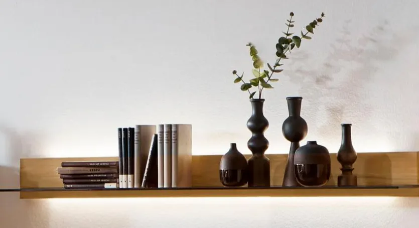- Zeilenschrank 1 besteht aus 4 Türen, 2 davon mit Glasausschnitt, 7 Böden, 1 Glasboden und 10 Fächer