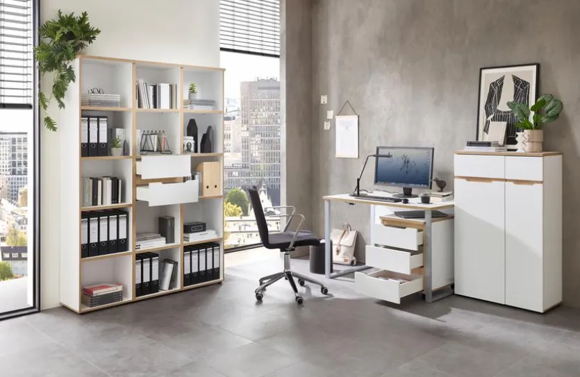 - Mit 4 offenen Fächern, 2 Schubkästen und 3 Fachböden