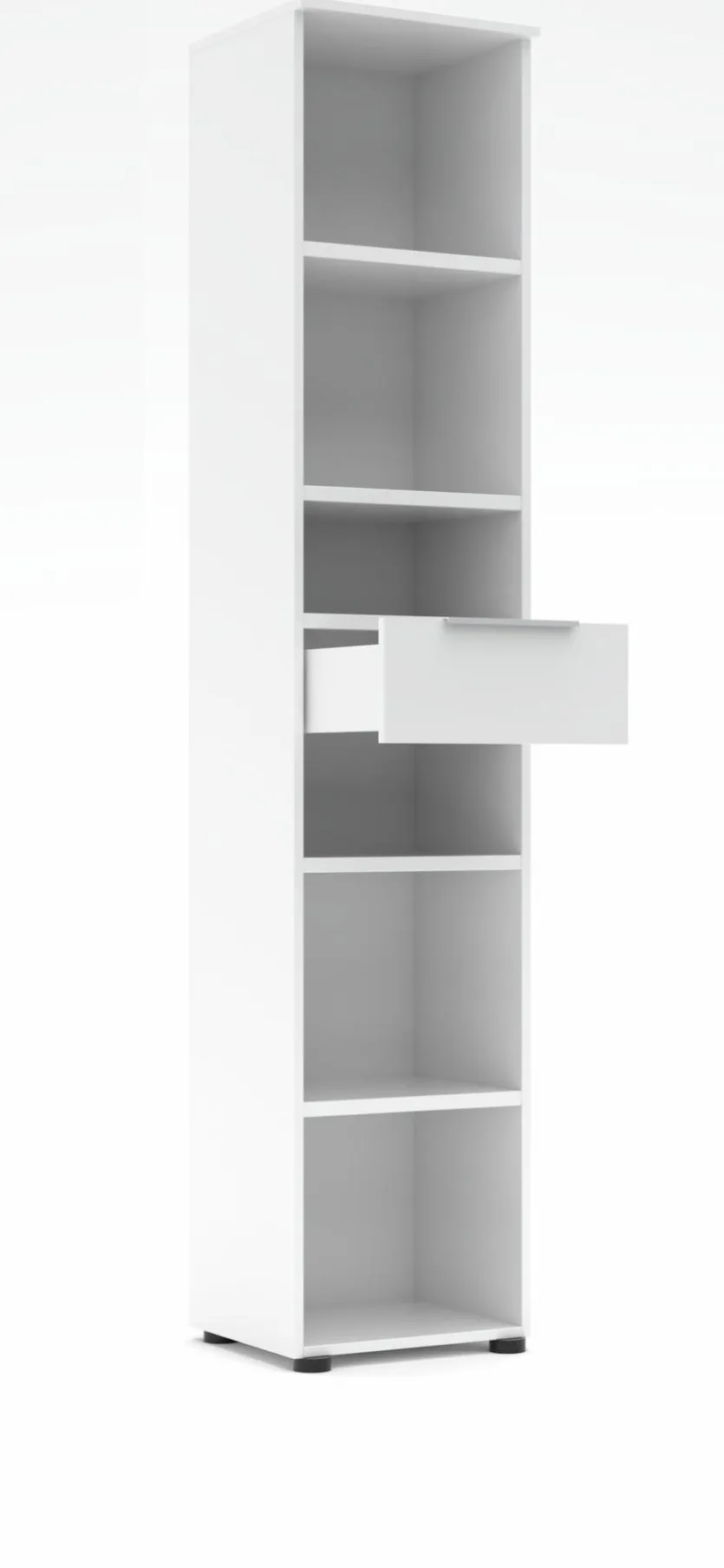 - Mit 1 Schubkasten und 6 offenen Fächer