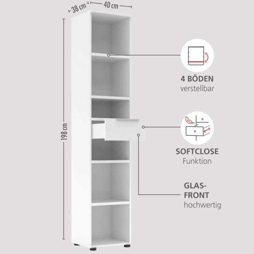 Farbe: WeißMaterial: DekorGröße: Breite: 40,00 cm, Höhe: 198,00 cm, Tiefe: 38,00 cm