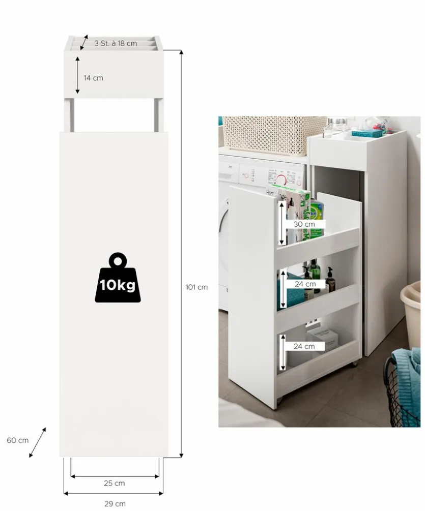 Das Anstellregal Lucca steht für schlichtes Design und durchdachte Funktionalität. Es besteht aus einem Apothekerauszug mit drei Fächern sowie einer Schublade und bietet willkommenen Stauraum für Putzmittel, Haushaltsgegenstände und sonstiges Zubehör. Nutzen Sie das Anstellregal Lucca in Kombination mit weiteren Stücken der Möbelserie oder platzieren Sie es für sich alleine.