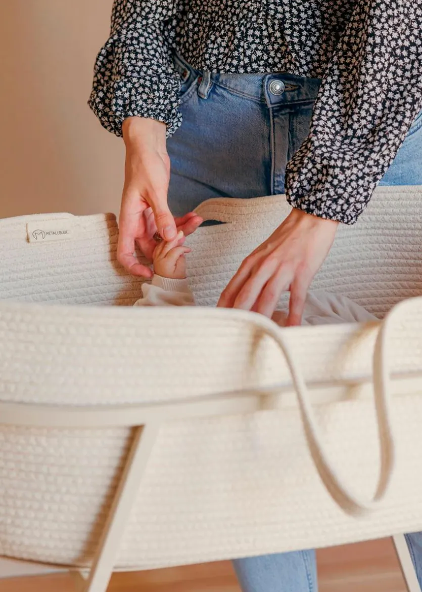 Mit ihrer filigranen Formensprache und ihrem minimalistischen Design fügt sich die Babywiege Korsina von Metallbude ästhetisch in jedes Interieur ein. Dieser Stubenwagen stellt ein charmantes, elegantes Schlafnest für Ihr Neugeborenes dar. Dank seiner praktischen Tragegriffe kann der Korb der Babywiege Korsina bequem von einem Ort zum anderen transportiert werden, sodass Ihr Nachwuchs immer in vertrauter Umgebung schlummern kann.