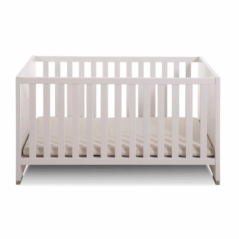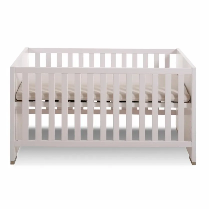 - Babybett mit 2 herausnehmbaren Schlupfsprossen und 4-fach höhenverstellbarem Lattenrost, belastbar bis max. 75 kg; Umbaubar zum Juniorbett durch optional gegen Mehrpreis erhältliche Bettseiten
