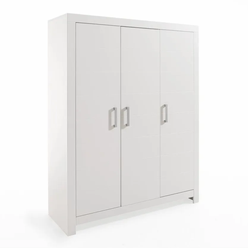 - Kleiderschrank mit 3 Türen, 2 Mittelwänden, 2 Kleiderstangen, 4 breiten Einlegeböden und 4 schmalen Einlegeböden, Griffe chrom matt