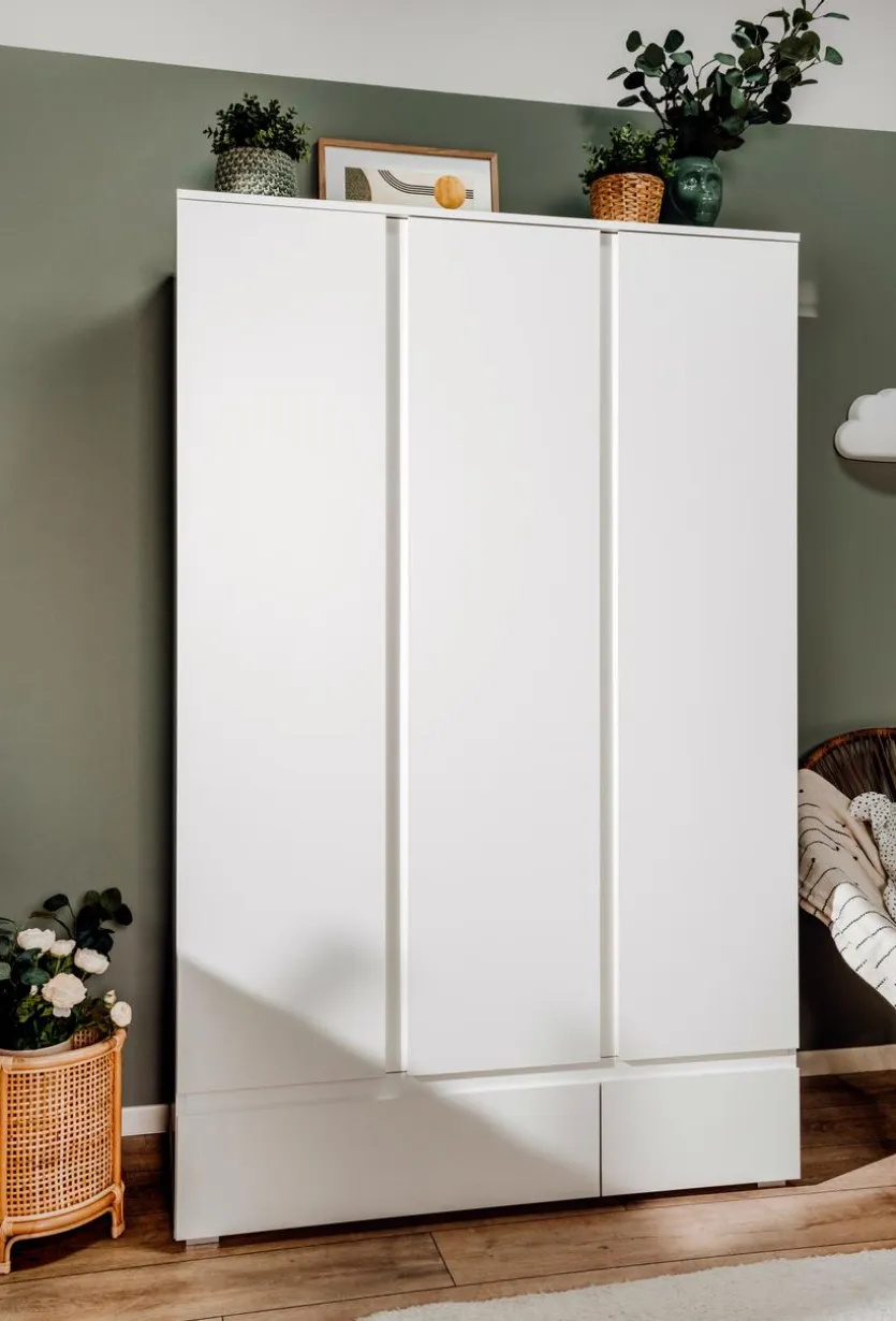 - Kleiderschrank mit 3 Türen, 5 Böden, 2 Kleiderstangen und 2 Schubkästen