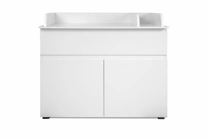 - Wickelkommode mit 2 Türen, 2 Einlegeböden und 1 Schubkasten, mit im Lieferumfang enthaltener, entfernbarer Wickelplatte, Deckplatte der Kommode bis max. 15 kg belastbar