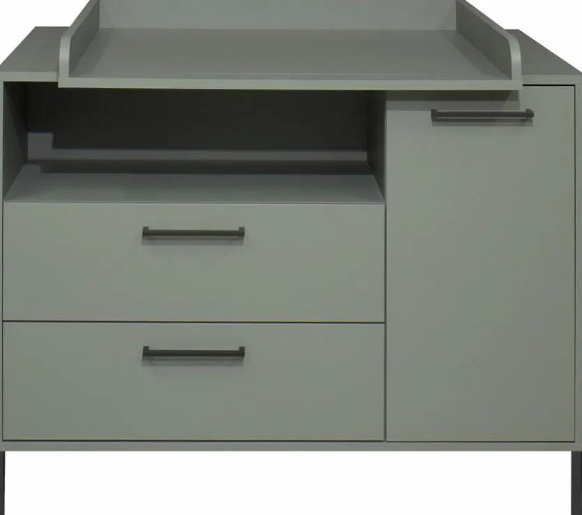 - Wickelkommode inkl. Wickelaufsatz, mit 1 Tür, 1 Einlegeboden, 2 Schubkästen und 1 offenen Fach