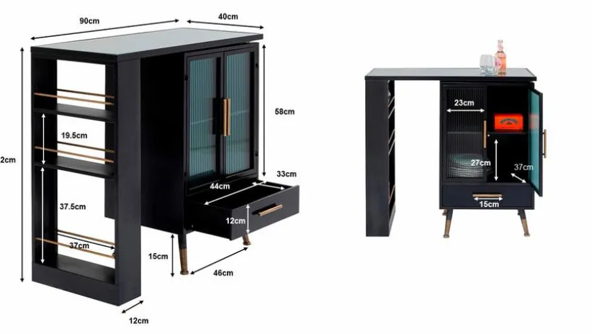 - Korpus aus Holzwerkstoff (MDF) mit Lack in anthrazit, Seitenteile aus ESG Glas satiniert