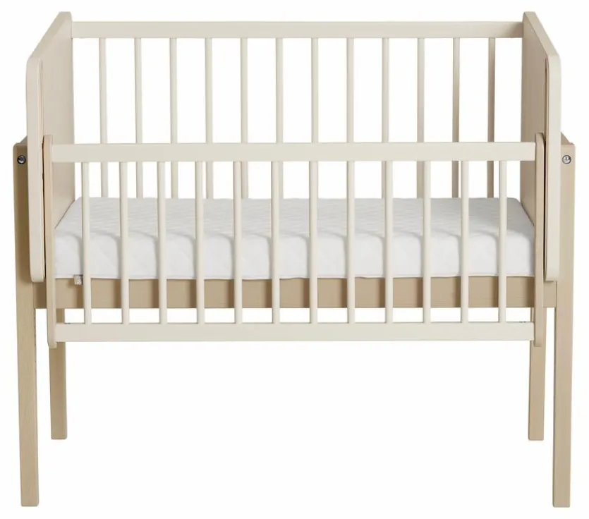 - Durch Abmontieren der Gitterseite kann das Beistellbett zum Kindersofa umgebaut werden.