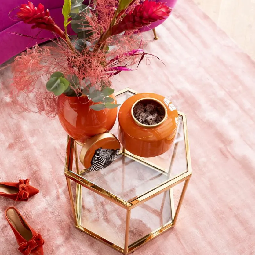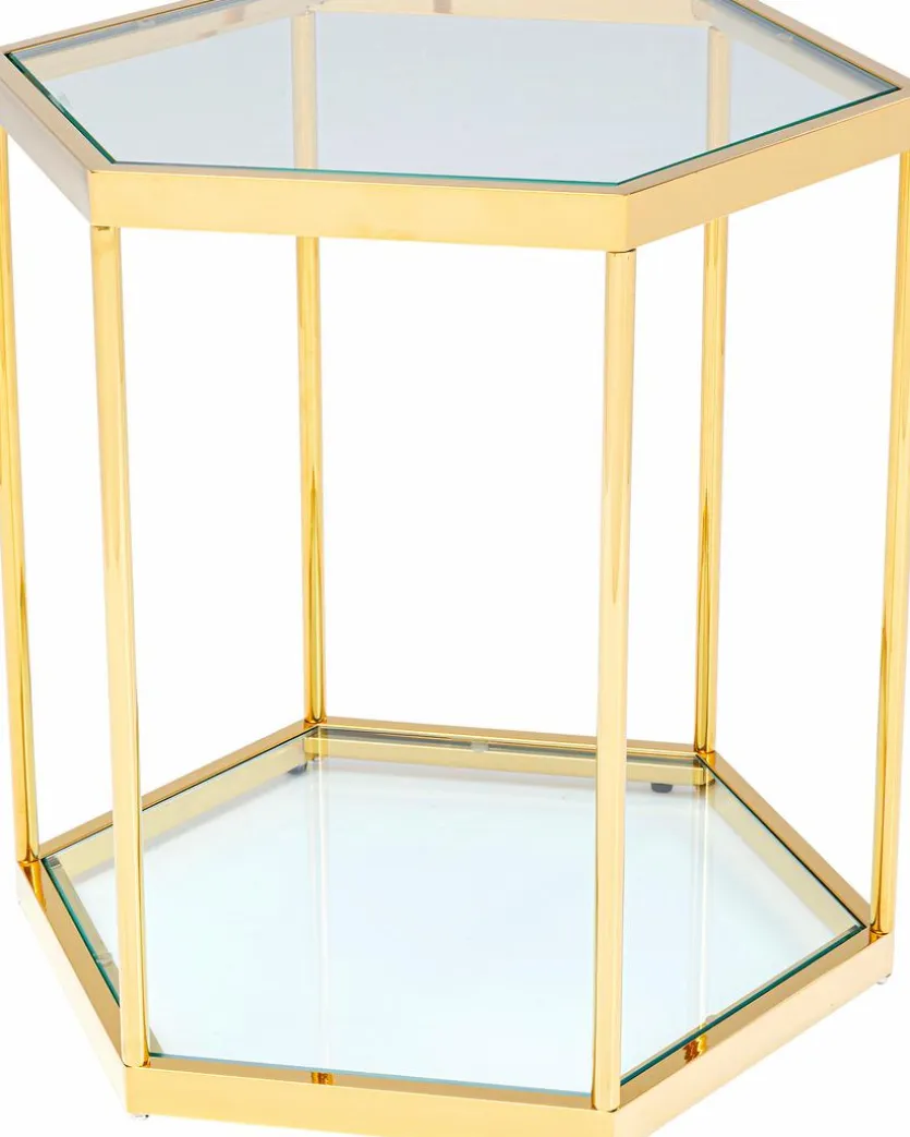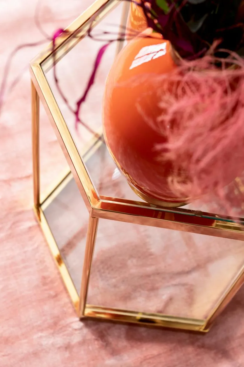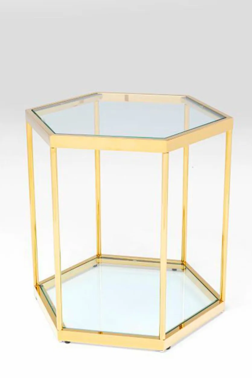Setzen Sie mit dem Beistelltisch 85029 Comb einen glamourösen Raumakzent. Eine sechseckige Form und polierte Oberflächen bestimmen den Look dieses Tischchens, das sich zum Beispiel wunderbar neben einem Sessel oder vor eine Couch platzieren lässt. Der Beistelltisch 85029 Comb harmoniert gut mit Möbeln im Vintage-Stil.