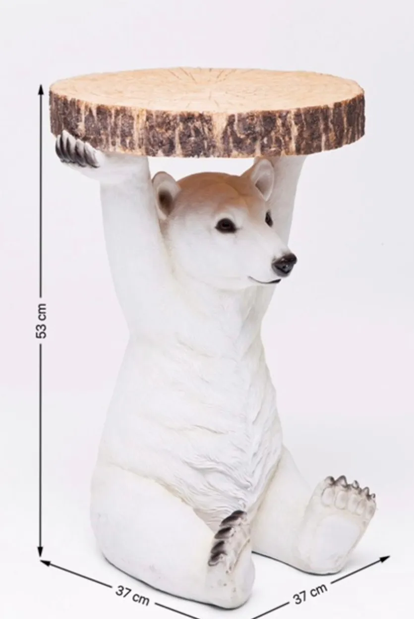 Der niedliche Beistelltisch Polar Bear 78943 von KARE DESIGN zaubert seinem Betrachter sofort ein Lächeln ins Gesicht. Wer erwartet schon einen Eisbären neben Ihrem Sofa, der keck eine Baumscheibe hochstreckt, damit Sie und Ihre Gäste darauf die Gläser abstellen können? Aber auch neben Ihrem Bett kann der stylische Beistelltisch Polar Bear 78943 eine praktische Ablagefläche bieten.