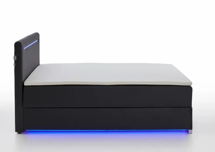 - Umlaufende LED-Beleuchtung auf der Unterseite, Kopfteil inkl. LED-Beleuchtung und USB-Anschluss