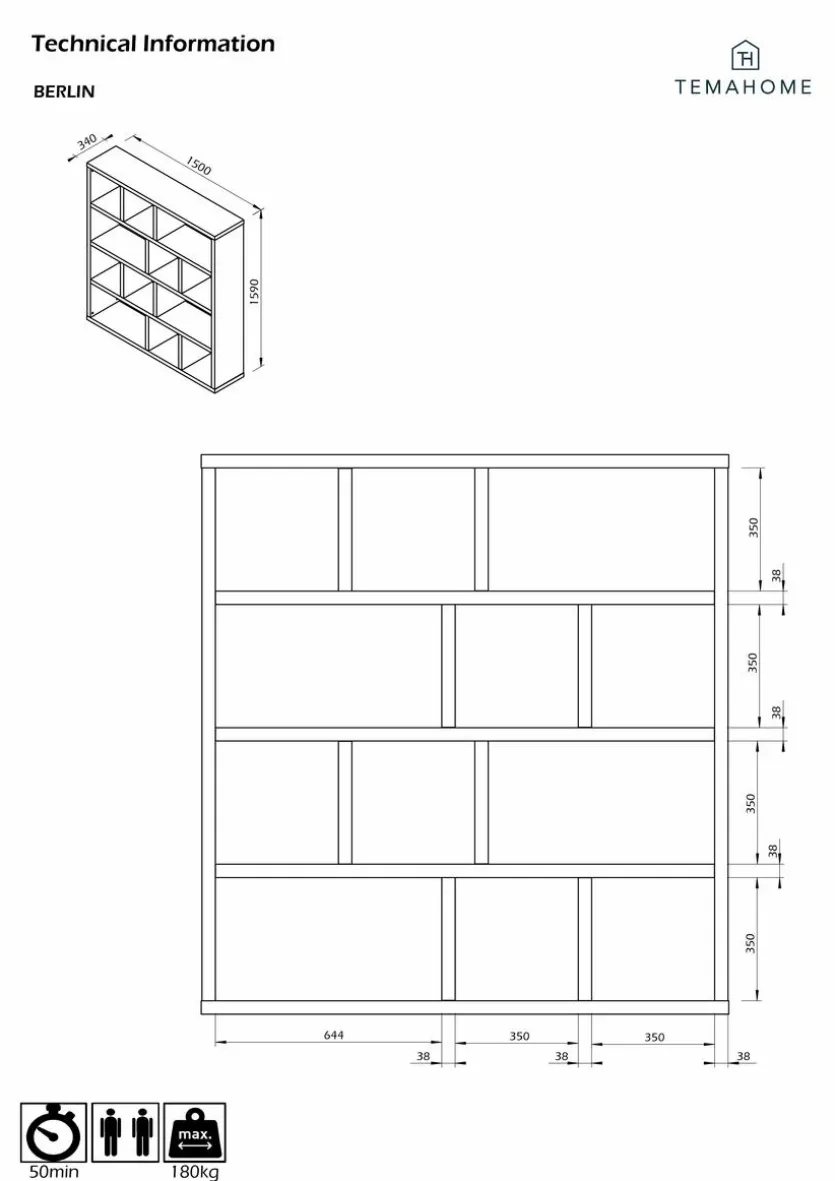 In dem Bücherregal Berlin von TemaHome können Sie viel Lesestoff einsortieren und natürlich weitere Dinge verwahren. Das Regal bietet Ihnen zwölf offene Fächer, die reichlich Stauraum bereithalten. Außerdem lässt sich das Bücherregal Berlin aus der Kollektion von TemaHome vielseitig kombinieren, um zahlreiche Einrichtungen abzurunden.