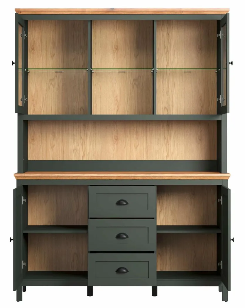 - Korpus aus Holzwerkstoff (Spanplatte) mit hochwertiger Dekorfolie in Tannengrün, Front aus Holzwerkstoff (MDF) mit hochwertiger Dekorfolie in Tannengrün