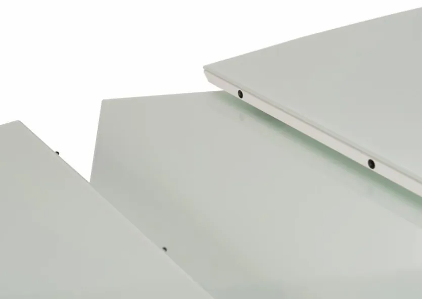 - Tischplatte aus Glas in weiß auf einer Trägerplatte