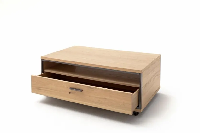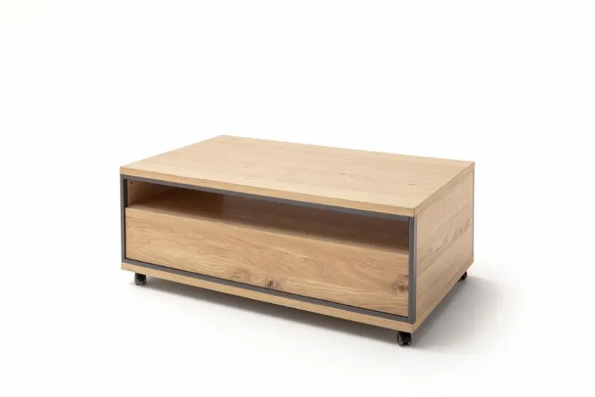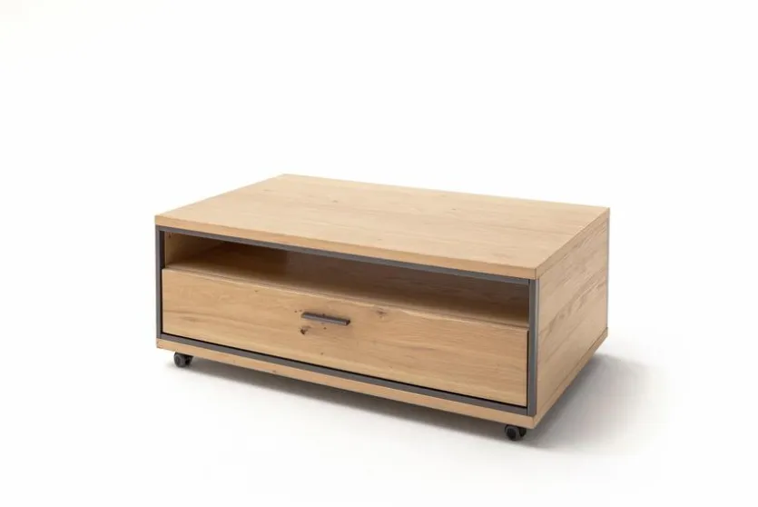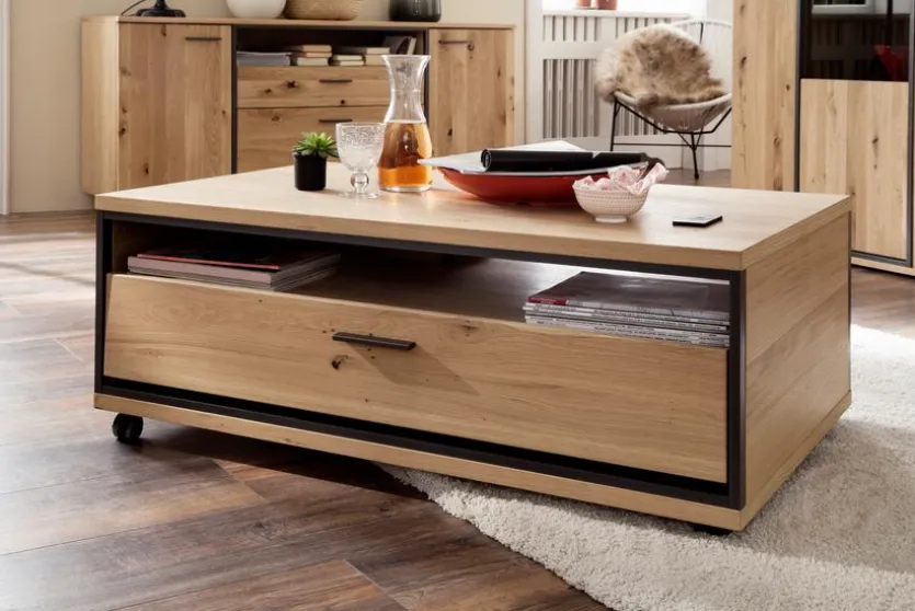Der Couchtisch Campinas aus dem Hause MCA punktet mit seiner klaren Linienführung. Auch die edle Holzoptik des Wohnzimmertisches ist in Kombination mit dem dunklen Rahmen eine augenfällige Designlösung, die Wärme und Behaglichkeit verströmt. Mit der großvolumigen Schublade und dem offenen Fach bietet der Couchtisch Campinas von MCA zudem viel Raum für allerlei nützliche und schöne Utensilien.