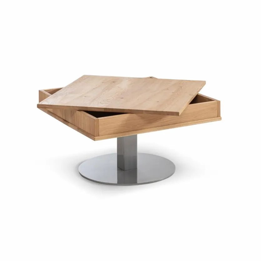 Der Couchtisch Dallas überzeugt mit seinem gewollt reduzierten, modernen Design, daher passt er besonders gut zum angesagten Scandi-Stil. Besonders praktisch ist die drehbare Platte, wodurch der Wohnzimmertisch Ihnen im Inneren zusätzlichen Stauraum für Zeitschriften und Zubehör bietet. Kombinieren Sie den Couchtisch Dallas gerne mit schnörkellosen Wohnkonzepten für ein stimmiges Ambiente.