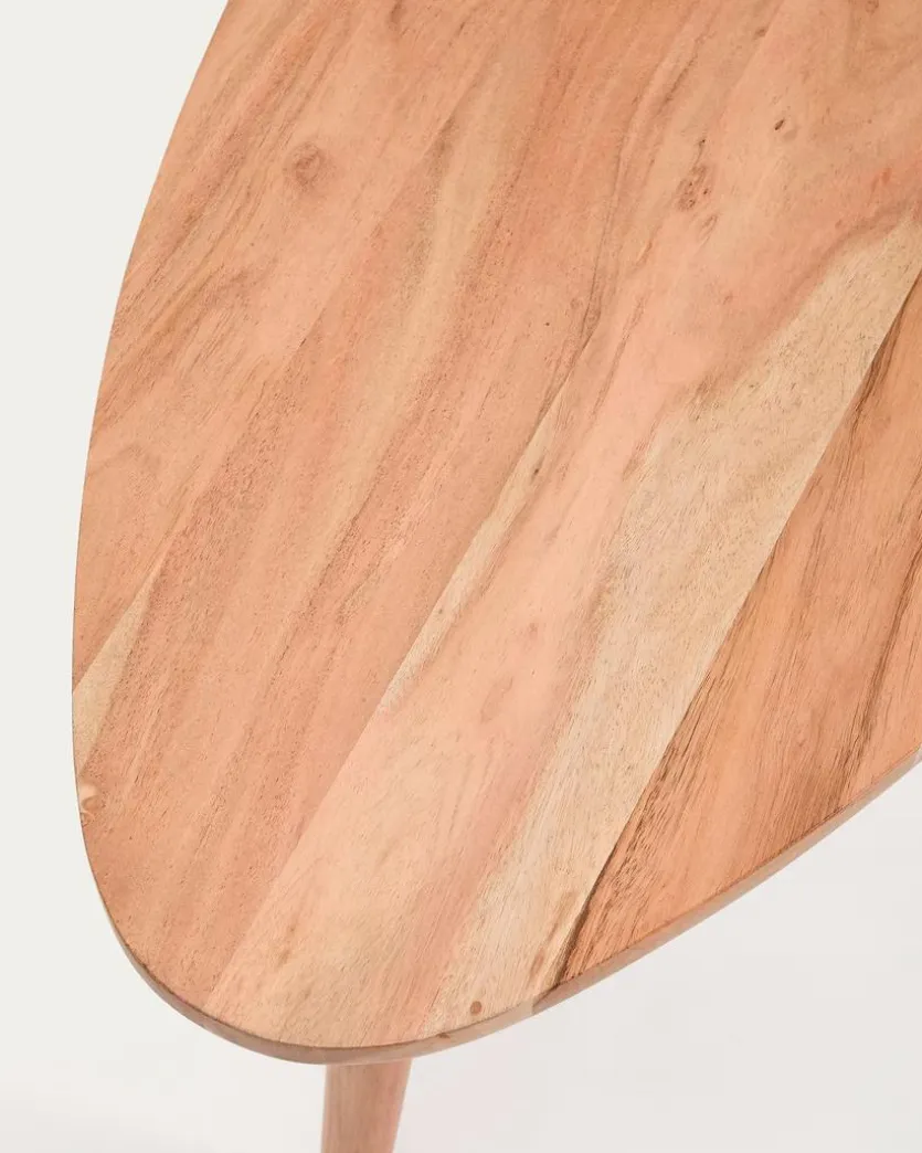 Der Couchtisch Duvani von Kave Home lenkt mit runden Formen die Blicke auf sich und wirkt ausgesprochen harmonisch. Ein gebleichtes Finish verleiht dem hölzernen Wohnzimmertisch einen besonderen Touch. Ausgesprochen gut passt der Couchtisch Duvani zum Beispiel in ein modernes Ambiente und zu einer Couch im freundlichen Scandi-Chic.