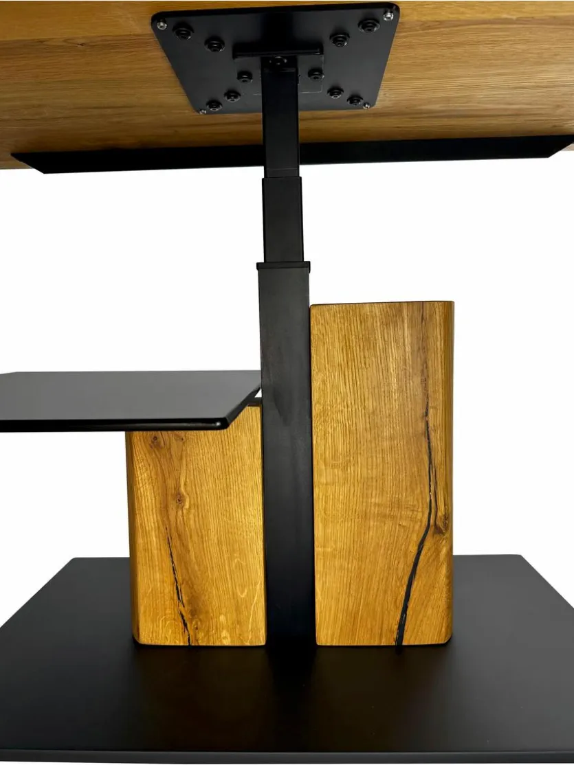 - Gestell aus einem Eiche Block massiv geölt, Höhenverstellung in Metall schwarz
