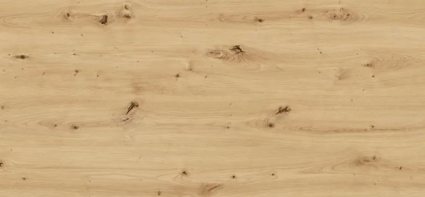 - Tischplatte aus Holzwerkstoff (Spanplatte) mit kratzfester Melaminharzfolie in Asteiche Nachbildung