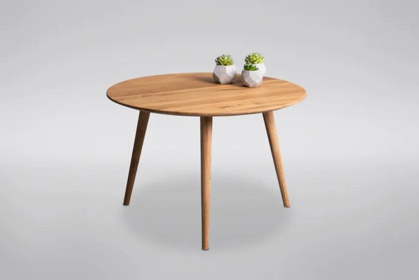 Der moderne Couchtisch Ø 75 cm Oslo bietet Ihnen genau das, was Sie sich von einem Wohnzimmertisch wünschen. Das stabile 3-Fuß-Gestell besteht ebenso wie die Platte aus massiver Wildeiche. Das Holz ist geölt und seine natürliche Maserung weiß zu begeistern. Der Couchtisch Ø 75 cm Oslo bietet Ihnen nicht nur praktische Abstellmöglichkeiten, sondern auch Raum für Ihre kreativen Deko-Ideen.