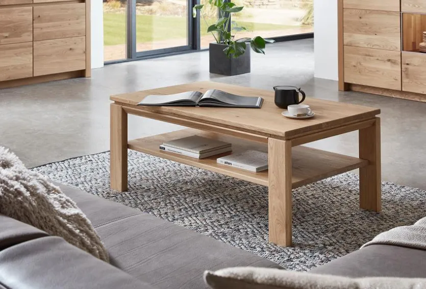 Der Couchtisch Soleo 3000 punktet mit seiner wundervollen Holzoptik, die für ansprechende Akzente im Raum sorgt. Natürlich bietet Ihnen der Wohnzimmertisch eine große Abstellfläche für diverse Alltagsgegenstände. Unter seiner Platte hält der Couchtisch Soleo 3000 zudem eine weitere praktische Ablage für Sie bereit.