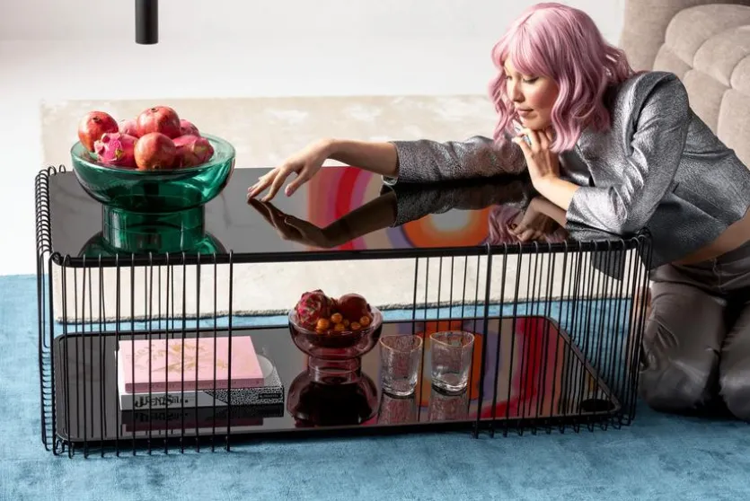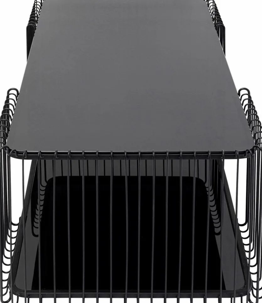 Auf zwei Etagen bietet der Couchtisch Wire Black 87818 von KARE DESIGN Platz für Nützliches und Dekoratives. Da sich der attraktive Wohnzimmertisch keinem bestimmten Stil zuordnen lässt, kann er vielfältig kombiniert und in verschiedene Einrichtungen integriert werden. Die filigranen umlaufenden Gitterstäbe, die sich zwischen beiden Platten befinden, verleihen dem Couchtisch Wire Black 87818 eine besondere Note.