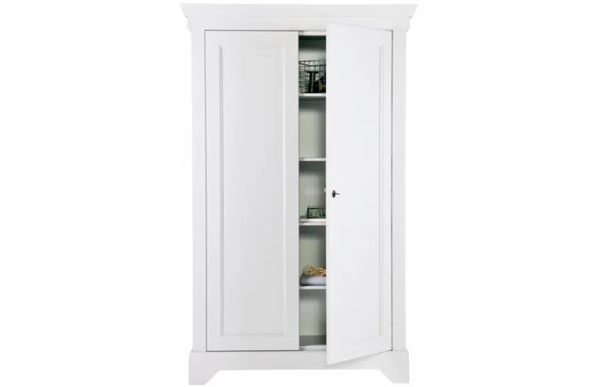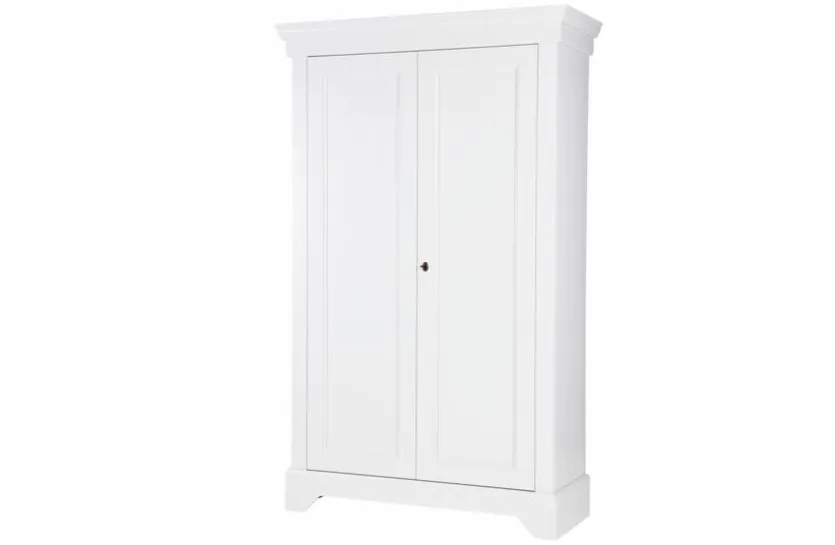 Der Dielenschrank Isabel sieht nicht nur schick aus, sondern ist auch ausgesprochen praktisch. Im Inneren bietet der Garderobenschrank viel Platz für Kleidung und andere Gegenstände und sorgt für Ordnung. Mit der unifarbenen Lackierung und der geschmackvollen Landhaus-Formgebung ist der Dielenschrank Isabel zudem sehr dekorativ.
