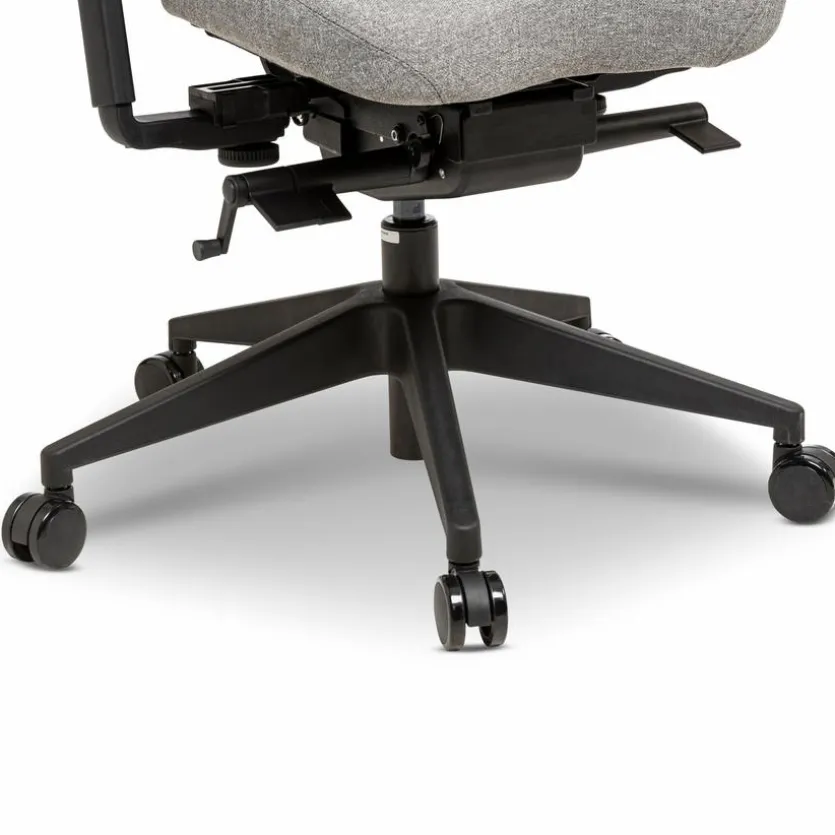 - Fußkreuz aus Nylon in schwarz mit gebremsten Universalrollen