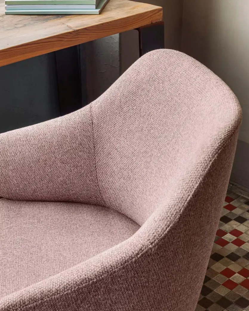 Der Drehstuhl Einara von Kave Home bietet Funktionalität und Chic. Eine Sitzschale, die mit einer ausgesprochen charmanten Formensprache die Blicke auf sich lenkt, prägt im Wesentlichen das Design dieses bequem gepolsterten Sitzmöbels. Dank der Rollen und der Höhenverstellung ist der mit Armlehnen versehene Drehstuhl Einara zudem wunderbar flexibel einsetzbar.