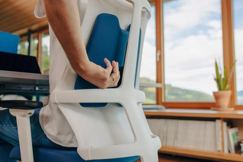 - Synchronmechanik, Anpressdruck auf das Körpergewicht einstellbar; inkl. höhen- und tiefenverstellbarer Brustwirbelstütze