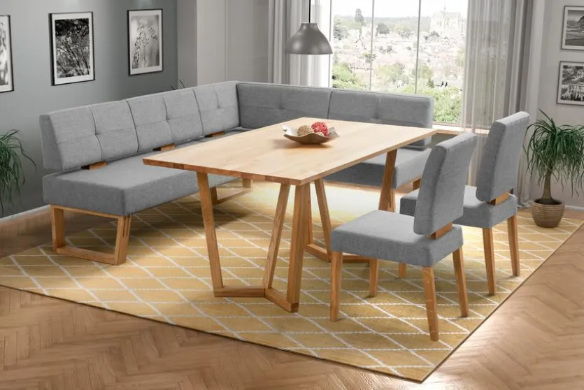 Mit der Eckbank Salina fügen Sie Ihrer Einrichtung eine komfortable Sitzgelegenheit hinzu. Das Möbelstück ist aber nicht nur äußerst gemütlich, sondern überzeugt ebenso durch sein ansprechendes Design. Außerdem garantiert Ihnen die Eckbank Salina maximale Stabilität dank des hochwertigen Gestells aus massivem Eichenholz.