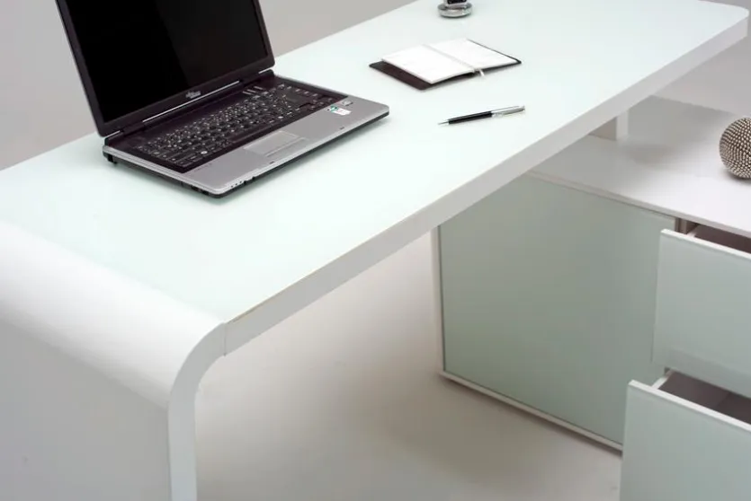 - Schreibtplatte mit eingelassener Glasplatte in weiß lackiert