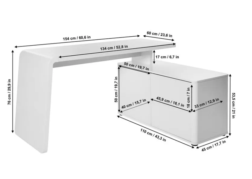 Farbe: WeißGröße: Breite: 154,00 cm, Höhe: 76,00 cm, Tiefe: 60,00 cm