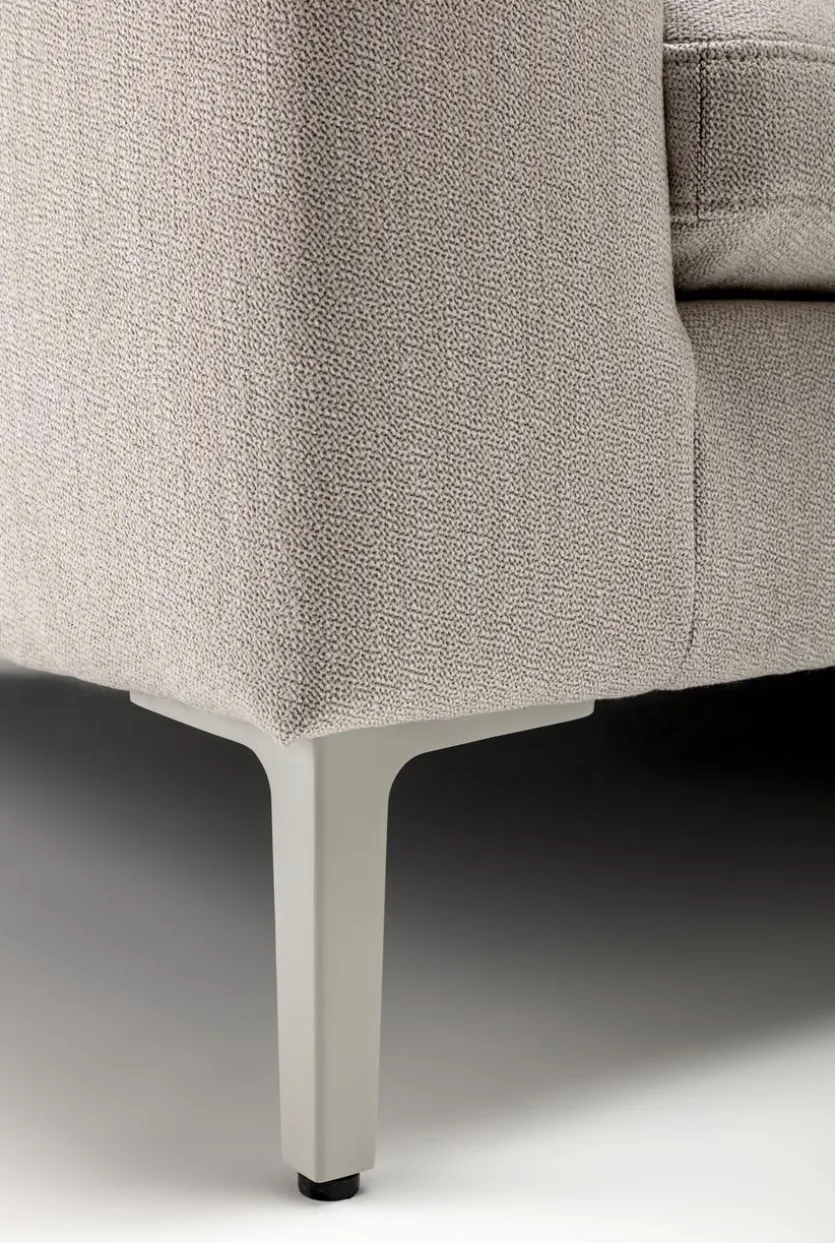 - Bezug aus Stoff in seidengrau (28.401), Füße Gussfuß in RAL 7044 seidengrau