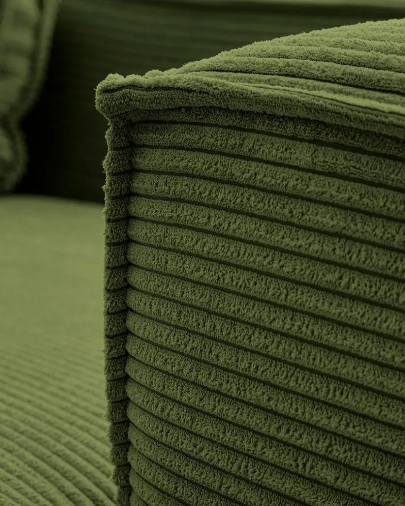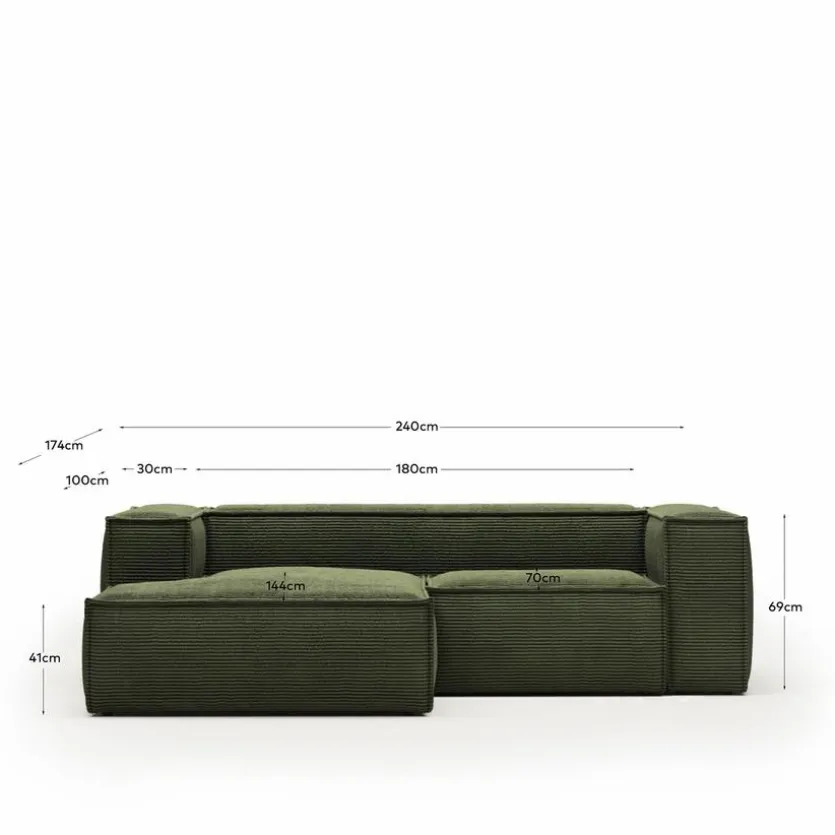 In einzigartigem Design präsentiert sich das Ecksofa Blok aus dem Hause Kave Home. Für Liebhaber des gerade angesagten Retro-Looks ist diese Eckcouch mit ihrem weichen Cordbezug die ideale Wahl. Die schnörkellose, geradlinige Formgebung erlaubt viele Kombinationen mit bereits vorhandenen Möbelstücken oder verschiedenen Einrichtungsstilen. Dank der komfortablen Schaumstoff-Polsterung ist das Ecksofa Blok bestens für einen langen TV-Abend mit der ganzen Familie geeignet.