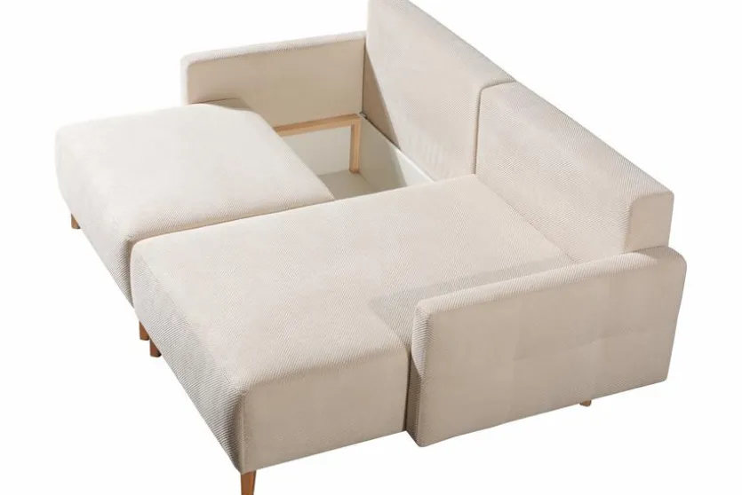 - Ecksofa besteht aus 2-Sitzer mit Armlehne links, Longchair mit Armlehne rechts