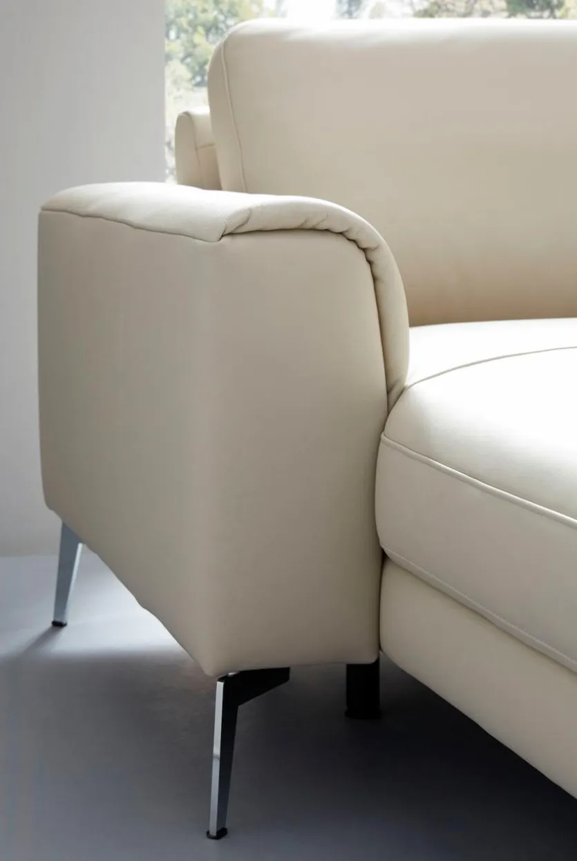 - Bezug aus Leder (WM, L30) in ecru, Füße Metall verchromt (MF3)