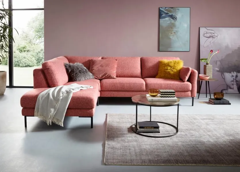 - Bezug aus Stoff (Marinet, Gr. IV) in coral (95), Füße Metall schwarz (MF1)