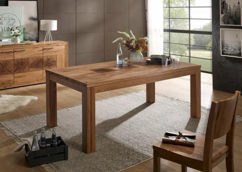 Dank seiner klaren Formensprache und seines natürlichen Materials bringt der Esstisch Fort Worth 180×90 cm von G+K zeitgemäße, ursprüngliche Schönheit ins Speisezimmer. Dieser Esszimmertisch strahlt Wärme, Entschleunigung und Geborgenheit aus. Sowohl in urbanen als auch in ländlichen Raumdesigns lässt sich mit Esstisch Fort Worth 180×90 cm ein zentraler Treffpunkt fürs gemütliche Beisammensein einrichten.