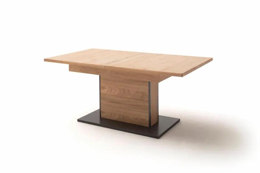 Der Esstisch mit Auszug Campinas aus dem gleichnamigen Wohn- und Speisezimmerprogramm von MCA ist ein variables Möbelstück im edlen Holzdesign. An diesem hellen Esszimmertisch können Sie allein, in Familie oder mit Gästen Platz nehmen. Per Synchronauszug lässt sich die Tischplatte des Säulentisches bei Bedarf verlängern. So sind Sie mit dem Esstisch mit Auszug Campinas von MCA auf künftigen Personenzuwachs im Haushalt bestens vorbereitet.