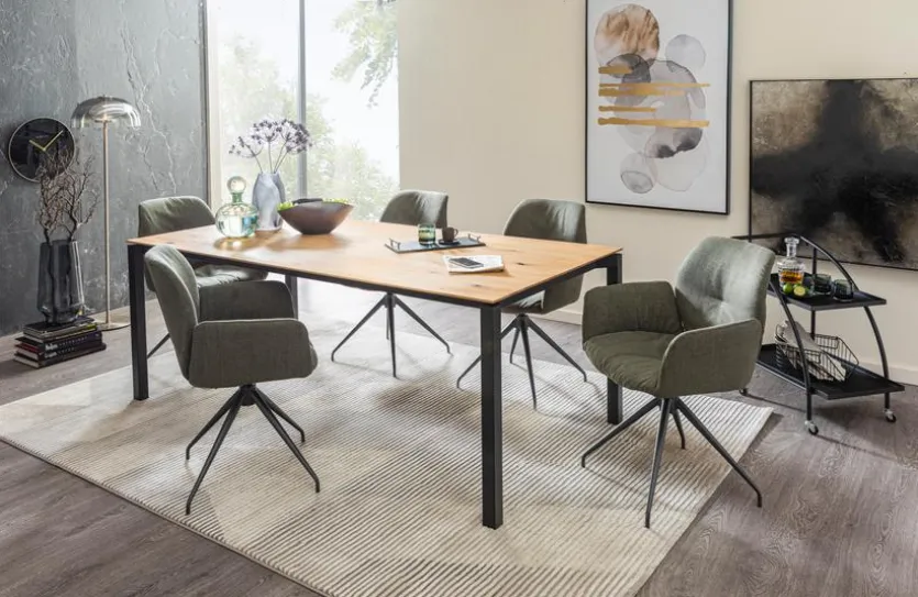Der aus Metall und Holz gestaltete Esstisch mit Auszug Float T0501 wartet mit einem modernen, wunderbar schlanken Design auf. Auch die Funktionalität überzeugt hier. Wenn Besuch ansteht, sind Sie mit dem Esszimmertisch gut vorbereitet. Schnell und einfach lässt sich der Esstisch mit Auszug Float T0501 bei Bedarf vergrößern.