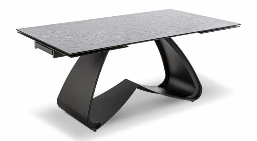 Mit seinem außergewöhnlich geformten Gestell und der Bubble-Optik auf der Platte stellt der Esstisch mit Auszug Sonora 180(280)x98 cm ein Design-Schmuckstück dar, das Luxus pur ausstrahlt. Kombiniert mit eleganten, bequemen Stühlen verwandelt dieser Esszimmertisch Ihren Speisesaal in ein modernes Nobelrestaurant. Kommen mehr Gäste, können Sie den Esstisch mit Auszug Sonora 180(280)x98 cm schnell vergrößern.
