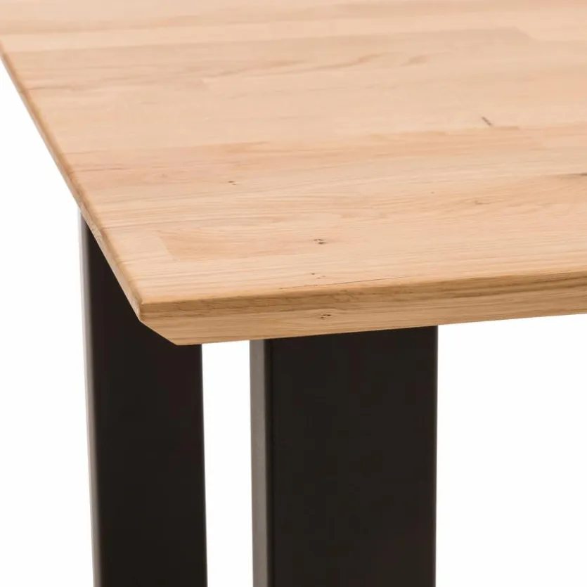 - Tischplatte aus massiver Wildeiche in Parkettverleimt und geölt