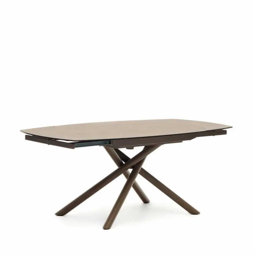 - Tischplatte aus Feinsteinzeug mit Glasauflage in braun gefärbt